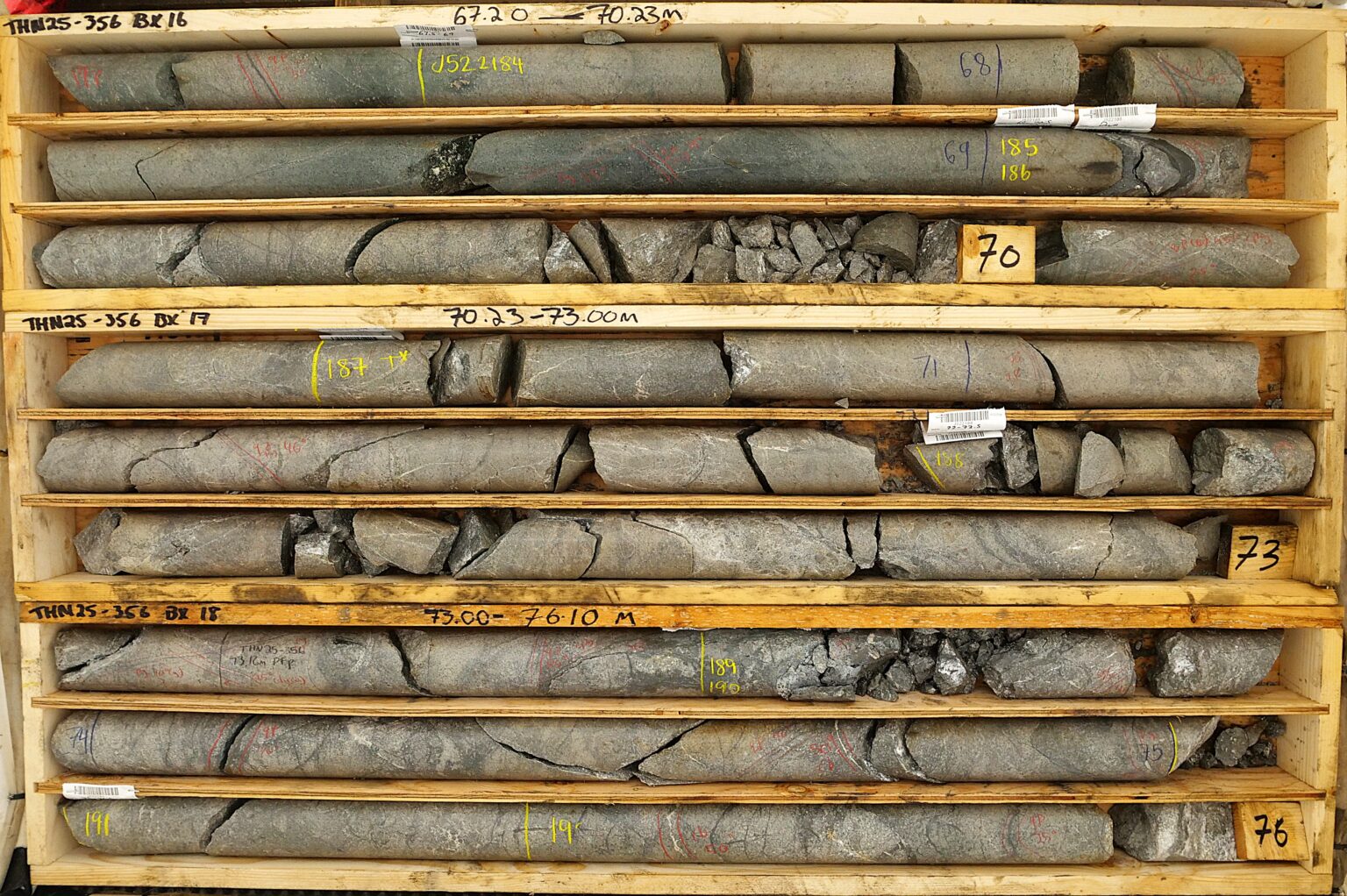 Figure 4. HQ drill core photographs of hole THN25-356 from 67.20 to 76.10 meters.