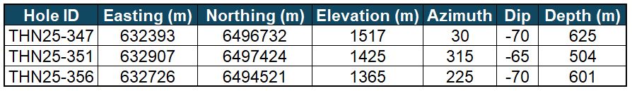 Table 2. Select Assay Intervals for holes THN25-347 and THN25-351 from the Catalyst Target.